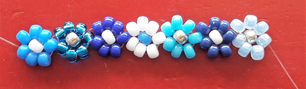 - Enfilez sur votre fil 5 perles de la couleur de votre choix