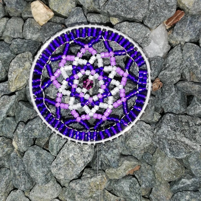 Ce tissage se réalise en commençant par le rang extérieur avec la technique du double brick stitch en utilisant les perles vertes émeraude.