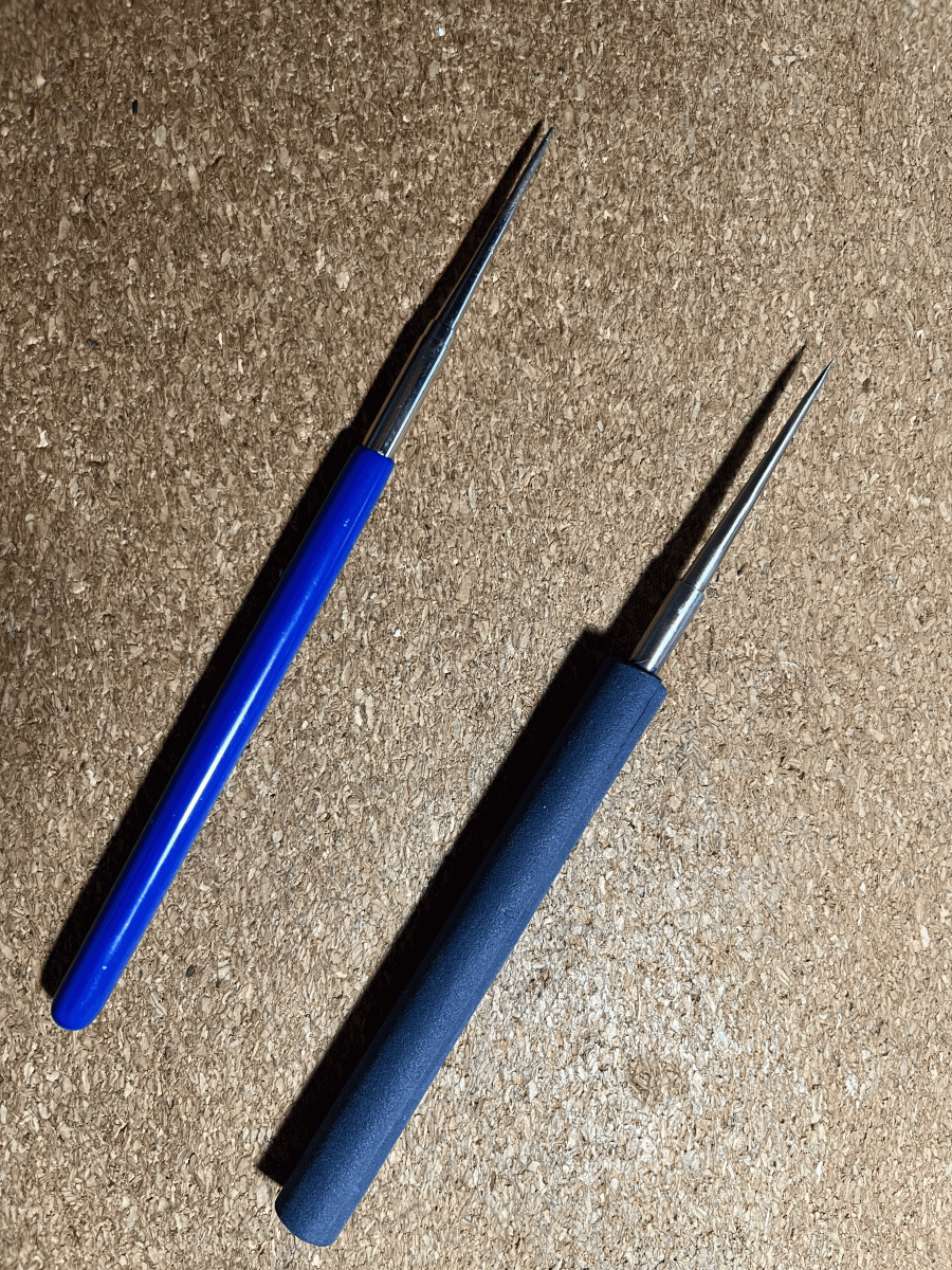 - Insérer la pointe de l'alêne dans le centre du noeud.