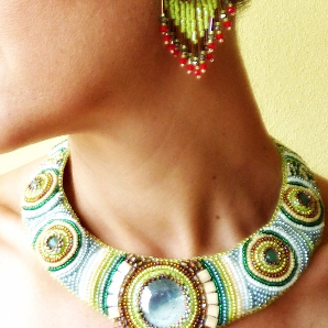 Bague en soutache avec cabochon PureCrystal et rocaille Miyuki