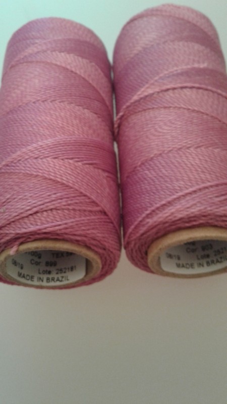 Le fil ciré brésilien Linhasita est fait de 4 brins de polyester ciré, enroulés ensemble pour former un fil de 1 mm de diamètre. Cette technique le rend solide, résistant aux moisissures et lavable.