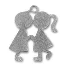 Breloque en métal couleur argenté vieilli, avec un anneau.