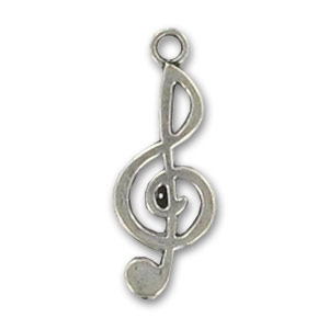 Breloque clé de sol 26 mm argenté vieilli x1
