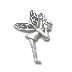 Breloque fée 23 mm Placage Argent fin vieilli x1