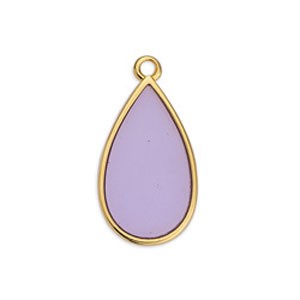 Cette breloque, en forme de goutte, en zamac dorée à l'or fin 24K est recouverte de résine époxy effet vitrail (transparent).