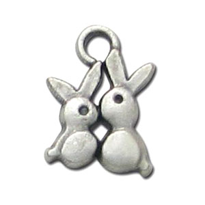 Breloque lapins 15 mm Placage Argent fin vieilli x1