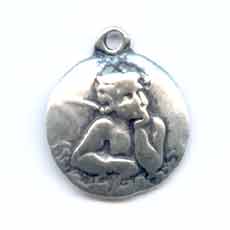 Breloque en métal couleur argenté vieilli, avec un anneau.