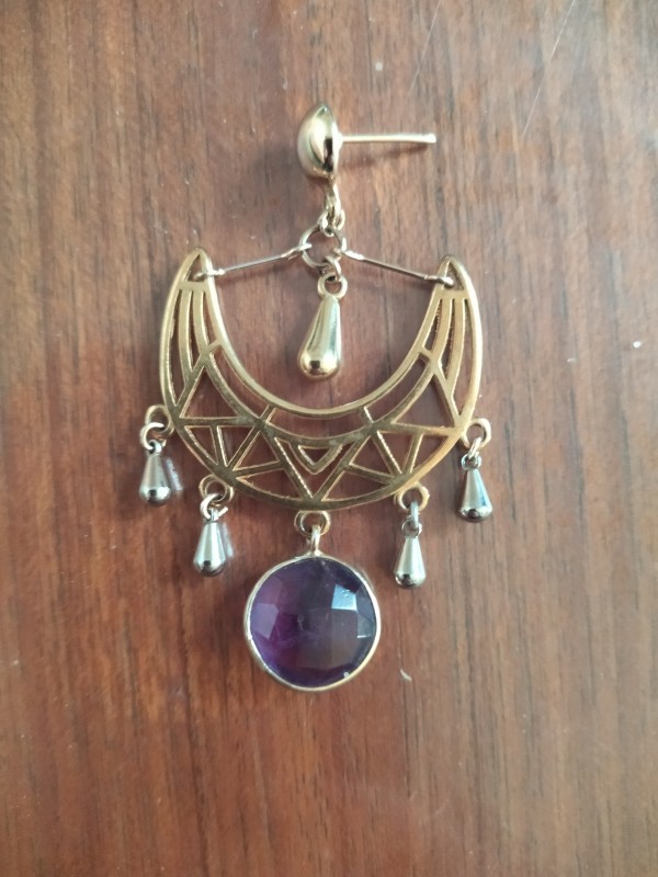 Cette petite breloque en forme de goutte est en laiton recouvert d'une finition doré.