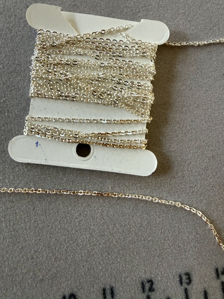 Un anneau ouvert ou un fil rond (un clou par exemple) de 0.5 mm de diamètre peut passer dans les maillons des extrémités de cette chaîne.