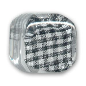 Perle en résine transparente avec un ruban à l'intérieur.