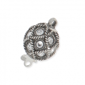 Fermoir à clipser plaqué rhodium incrusté de strass.