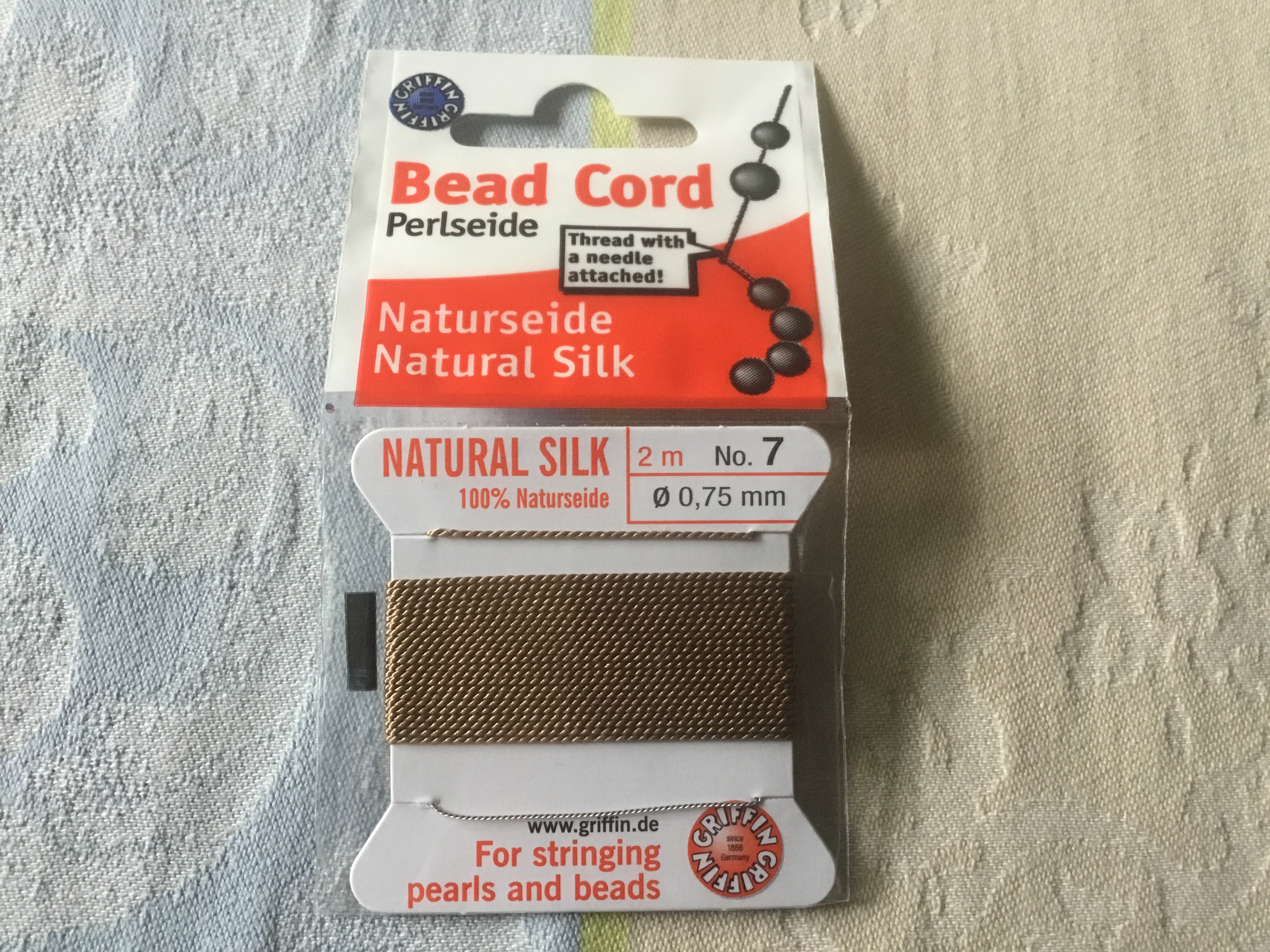 Fil de soie 100% naturelle attaché à une aiguille en acier.