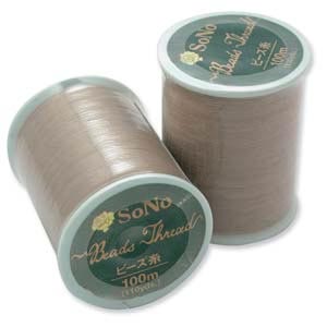Ce fil a été crée par la créatrice japonaise Sonoko Nozue et est semblabe en taille au fil Nymo B mais il est pré-conditionné avec une texture soyeuse qui lui confère résistance à l'effilochage et extensibilité.