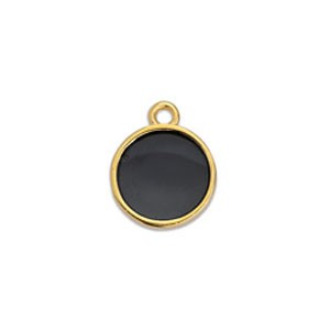 Cette mini-breloque ronde, en zamac dorée à l'or fin 24K, est recouverte de résine époxy noire, effet vitrail (transparent).
