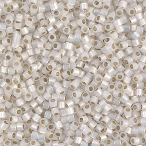 Perles Japonaises de taille 10/0 - Gilt Lined White Opal (environ 1.70 mm dans le sens du trou, 2.1 mm de diamètre)