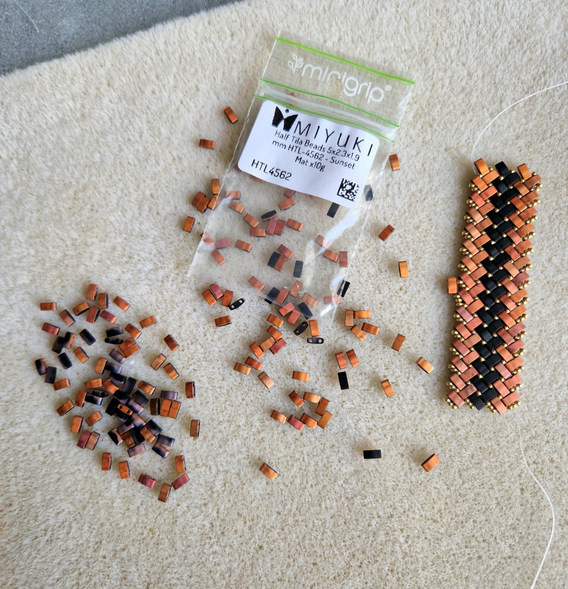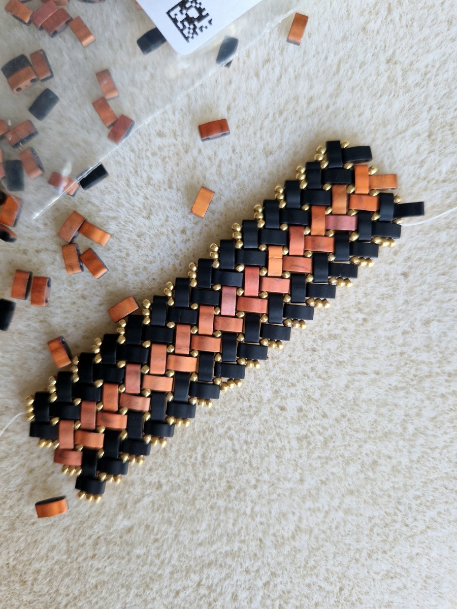 Les Miyuki Half Tila Beads 5x2.3x1.9 mm, sont compatibles avec les Miyuki Tila Beads 5x5x1.9 mm.