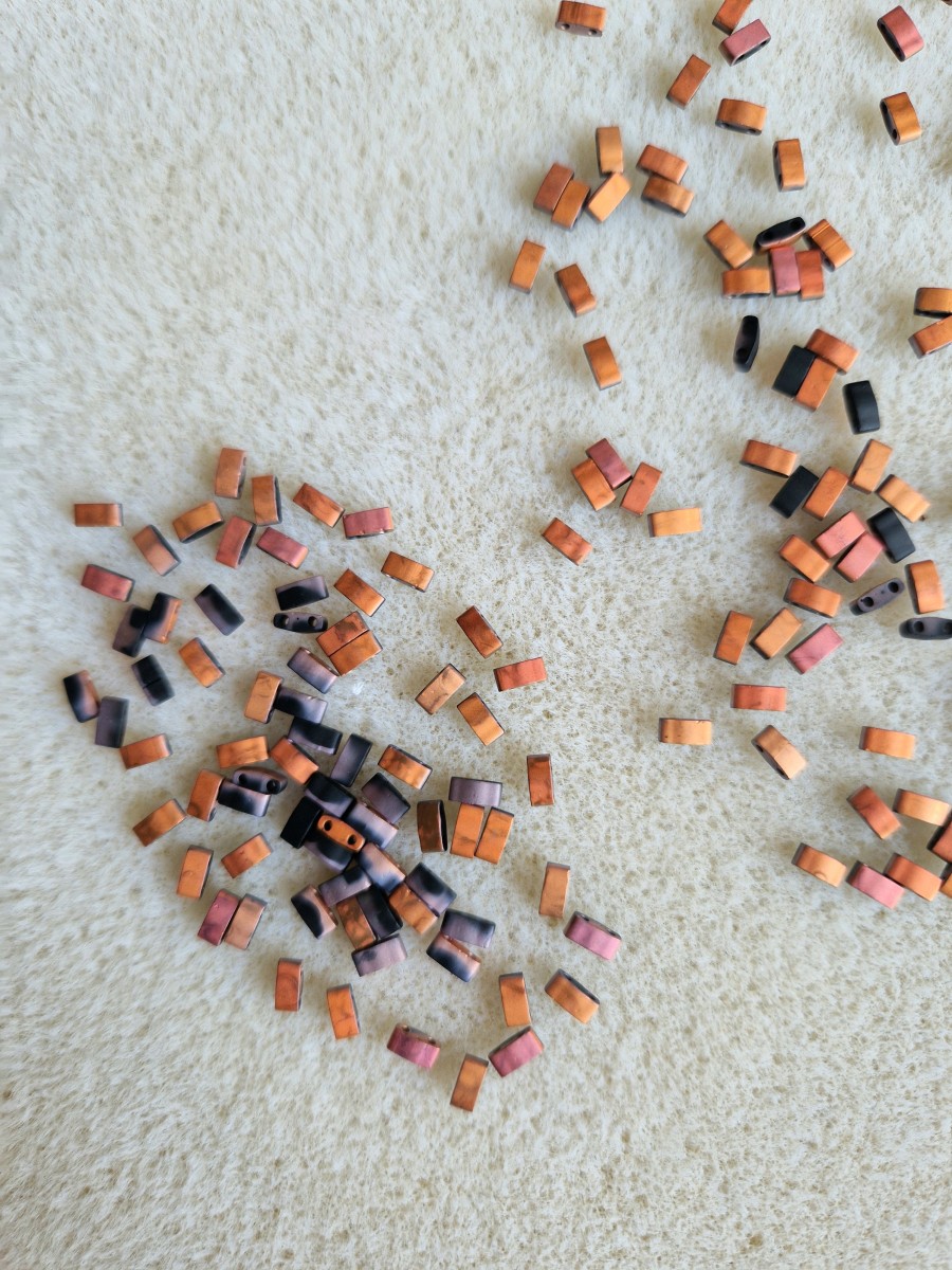 En raison de leur forme, de la finesse du verre et du perçage (2 trous), les Half Tila sont plus fragiles que les autres perles Miyuki.