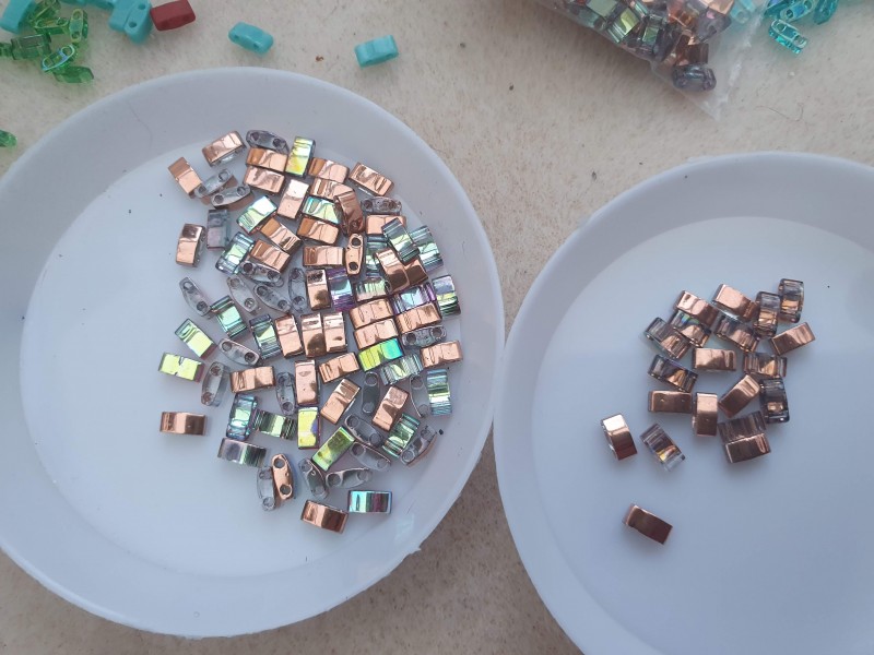 En raison de leur forme, de la finesse du verre et du perçage (2 trous), les Half Tila sont plus fragiles que les autres perles Miyuki.