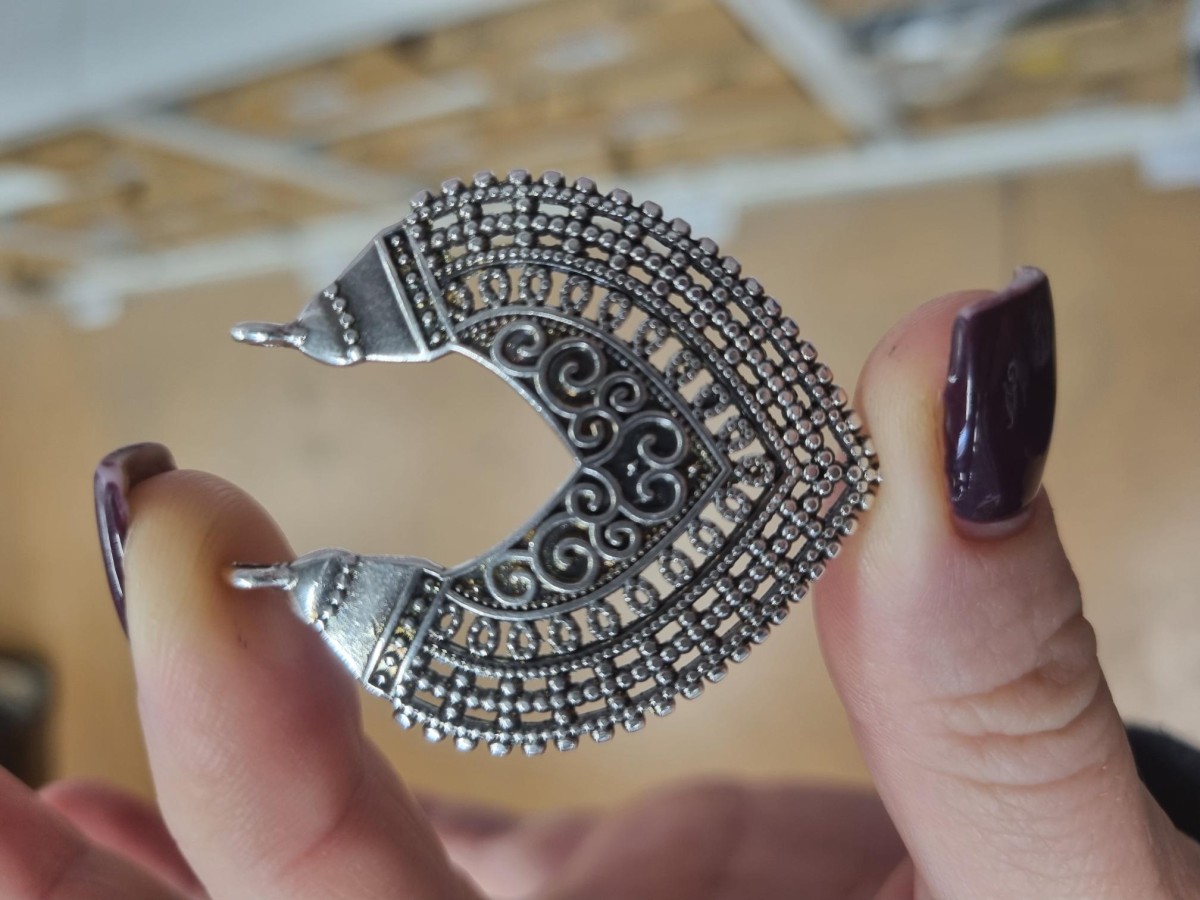 Pendentif avec deux anneaux, décoré de motifs ethniques.