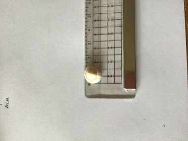 Les dimensions varient d'un coquillage à l'autre (environ 15 mm de diamètre et 8 mm en hauteur).