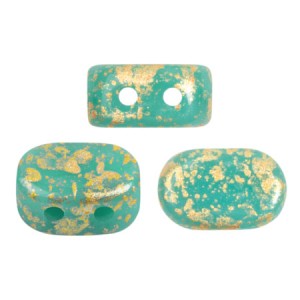 Perles en verre Lipsi® par Puca® 4x6 mm - Opaque Green Turquoise Gold Splash x10g