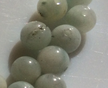 Ici elles sont ternes (je n'ai pourtant pas pris les mat), unies (aucune strate dans la pierre), et pleines de brisures (il manque des morceaux aux perles cf avant dernière perle en bas à droite).