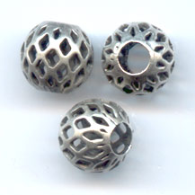 Boules filigranées en métal argenté vieilli.