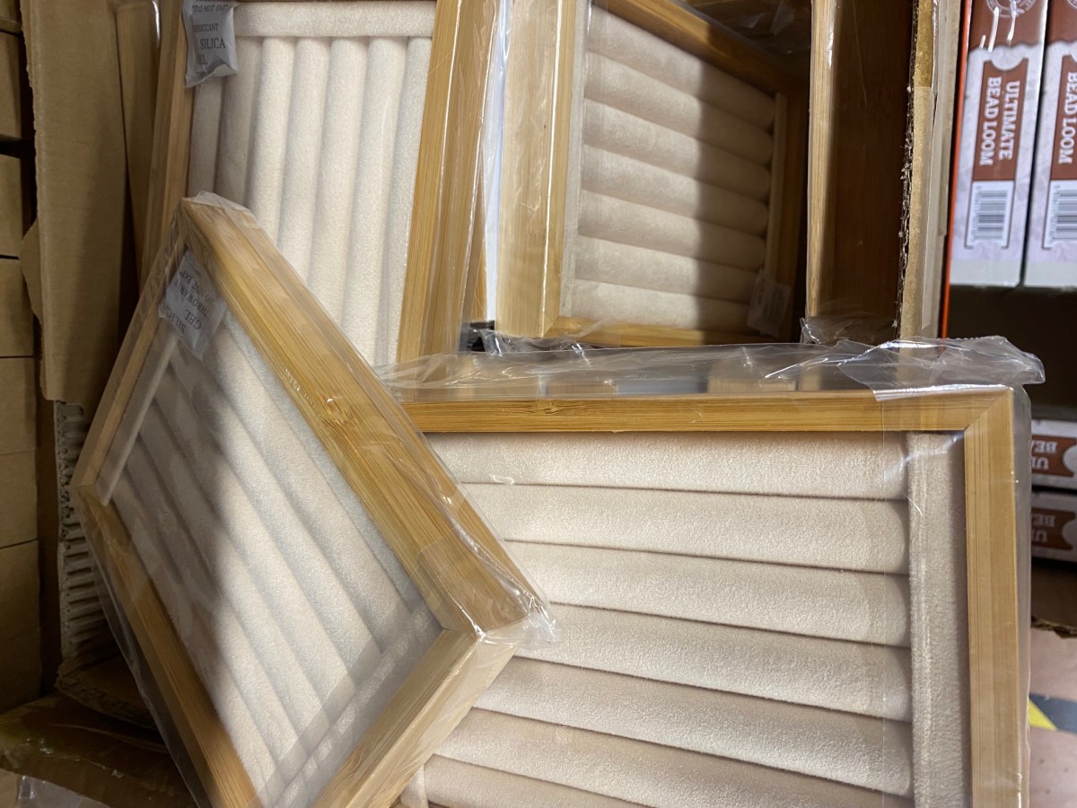 Exposez vos bijoux fantaisie DIY grâce à ce présentoir pour bijoux plateau en bambou et tissu suédine beige ! Doté de six rouleaux, il saura parfaitement mettre en valeur vos plus belles bagues DIY !