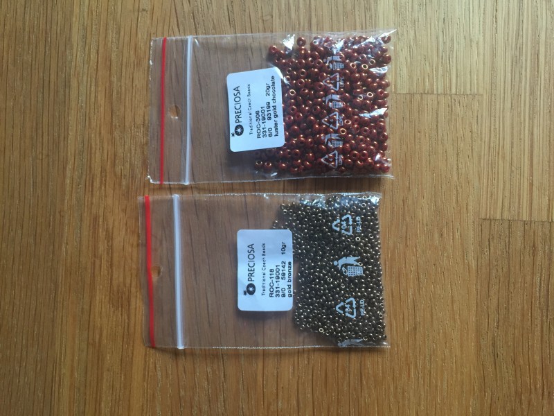 Rocaille de taille 6/0 (environ 2.5 mm dans le sens du trou, de 3.7 à 4 mm de diamètre).