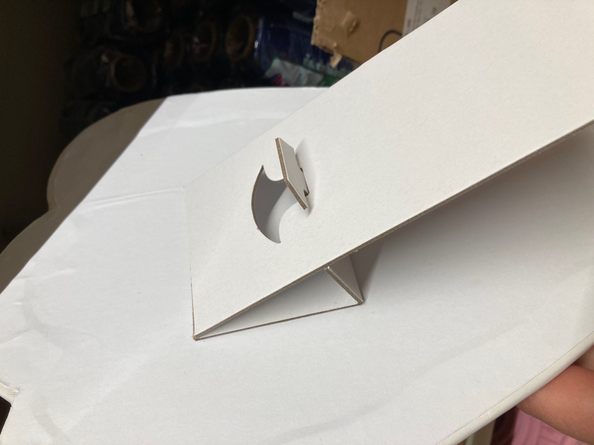 Présentoir à colliers en carton fort, recouvert d'un textile blanc imitation velours. Le dos est noir.