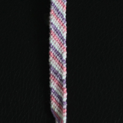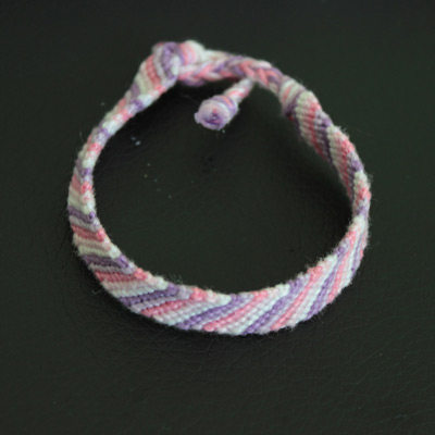 Répétez les étapes précédentes (3-4-5-6) en nouant votre fil violet clair autour de vos autres fils. Et ainsi de suite avec chaque fil, chaque couleur, jusqu'à obtenir la bonne taille de bracelet (ici arrêtez-le un peu avant, afin de pouvoir faire la tresse pour le "fermoir").