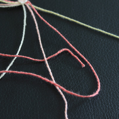 Nouez vos fils ensemble en laissant une boucle, qui servira de fermoir (pour y insérer un bouton, ne faites donc pas une boucle trop grande).
