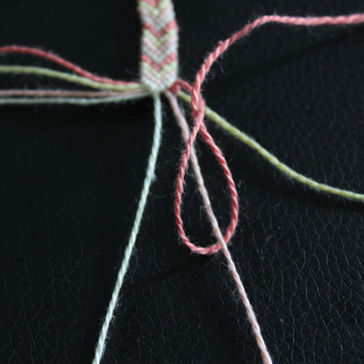 Une fois votre bracelet fini, nouez tous les fils ensemble.