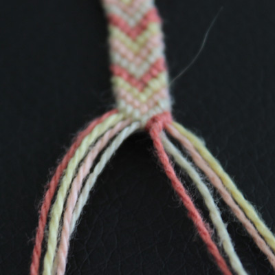 Pour le chevron, on noue les fils du milieu ensemble avec un noeud à l'endroit.