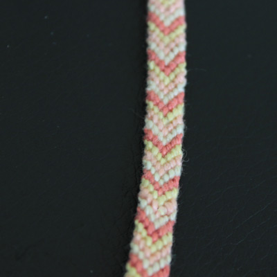 Le bracelet brésilien épis se fait comme le bracelet chevrons, avec des noeuds à l'endroit sur vos fils de gauche et des noeuds à l'envers sur vos fils de droite.