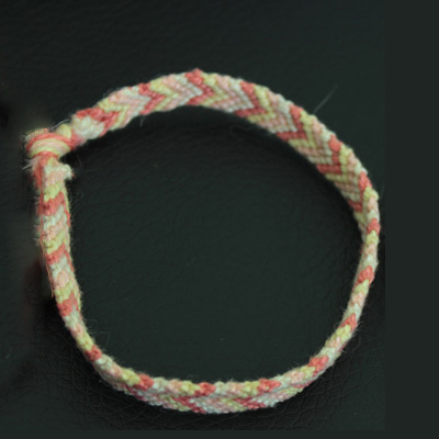 Recommencez ces étapes en pensant bien à faire des noeuds à l'endroit sur les fils de gauche et des noeuds à l'envers sur les fils de droite. Continuez jusqu'à faire le tour entier de votre poignet (ou cheville ...)
