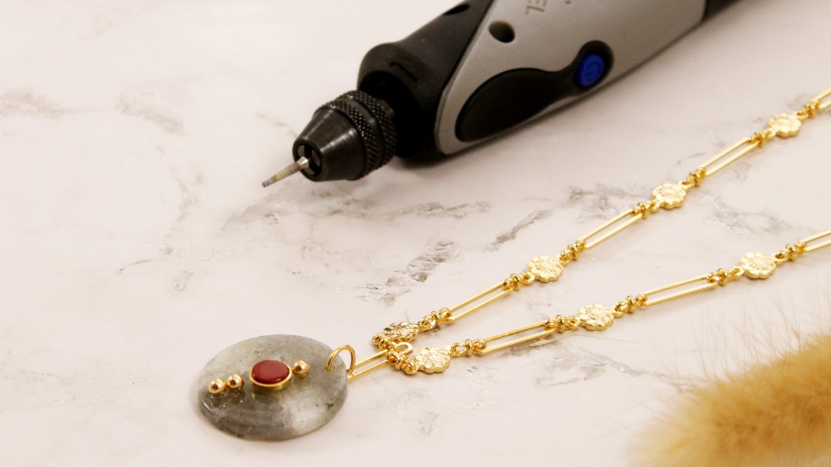 Découvrez comment incruster des perles et un support cabochon dans une pierre gemme pour réaliser un joli pendentif. Cette technique n'est pas difficile, mais il vous faudra du temps, de l'entraînement et de la patience pour arriver à maîtriser parfaitement le Dremel Stylo +.