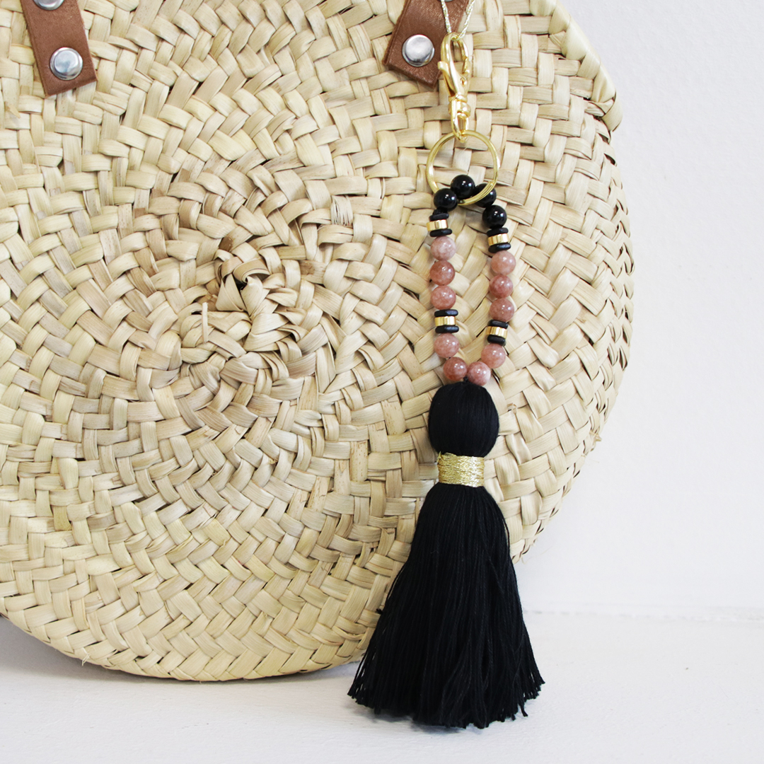 Avez-vous déjà pensé à utiliser des pierres gemmes pour vos accessoires de sac ? Elles donnent une touche chic et naturelle à vos grigris. Avec un pompon facile à faire en suivant notre DIY, c’est le duo parfait pour un porte-clés élégant.