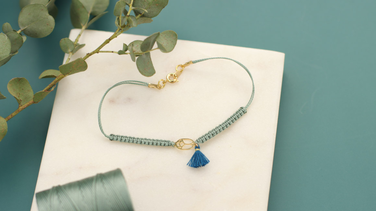 Nous vous proposons de découvrir aujourd'hui comment réaliser un bracelet avec un intercalaire scarabée, des nœuds en macramé et un pompon. Un bracelet tout fin, tout doux et très facile à faire.