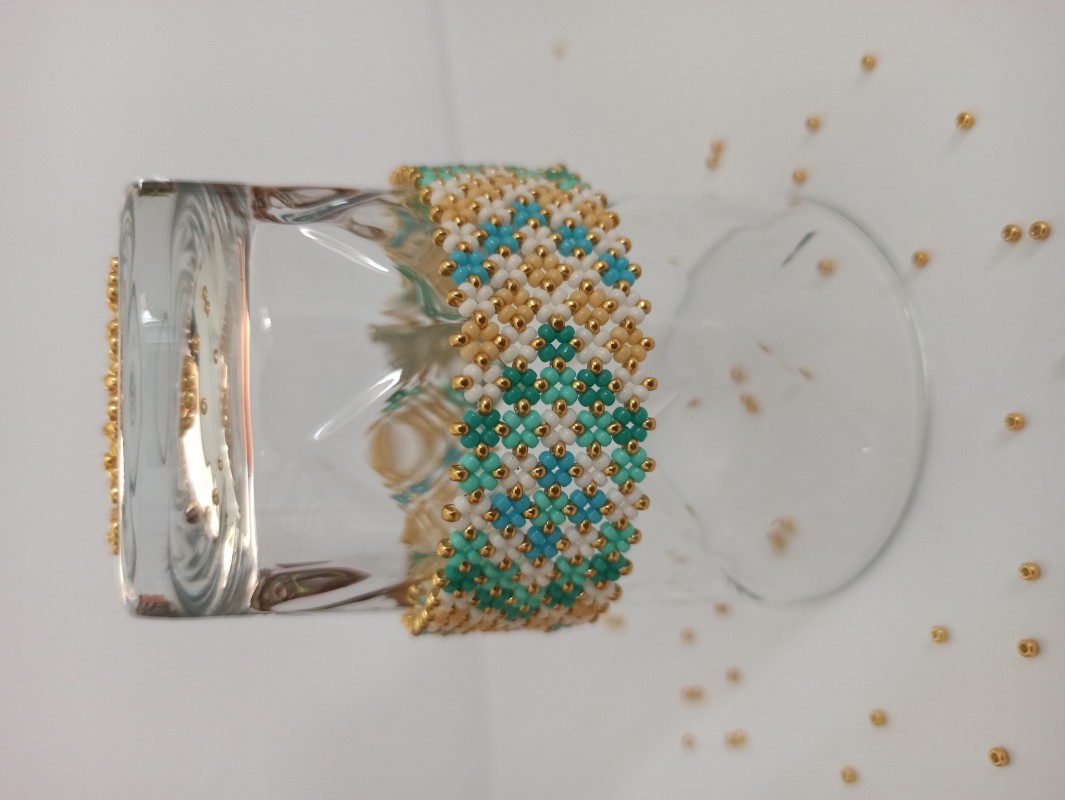 Et le soir, apéro et tapas, une jolie robe, une peau bronzée et évidemment cette jolie manchette en rocaille Miyuki 11/0 effet ouahou garanti !