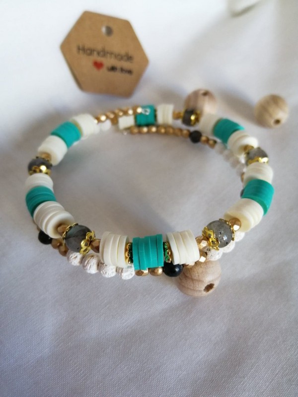 On a décidé de mixer deux incontournables de l'été pour ce DIY bijou facile. Les perles Heishi et les pierres gemmes ou pierres naturelles. Retrouvez dans ce pas à pas deux modèles différents de joncs. L'un élégant et sophistiqué, et l'autre aux couleurs pep's avec un magnifique turquoise.
