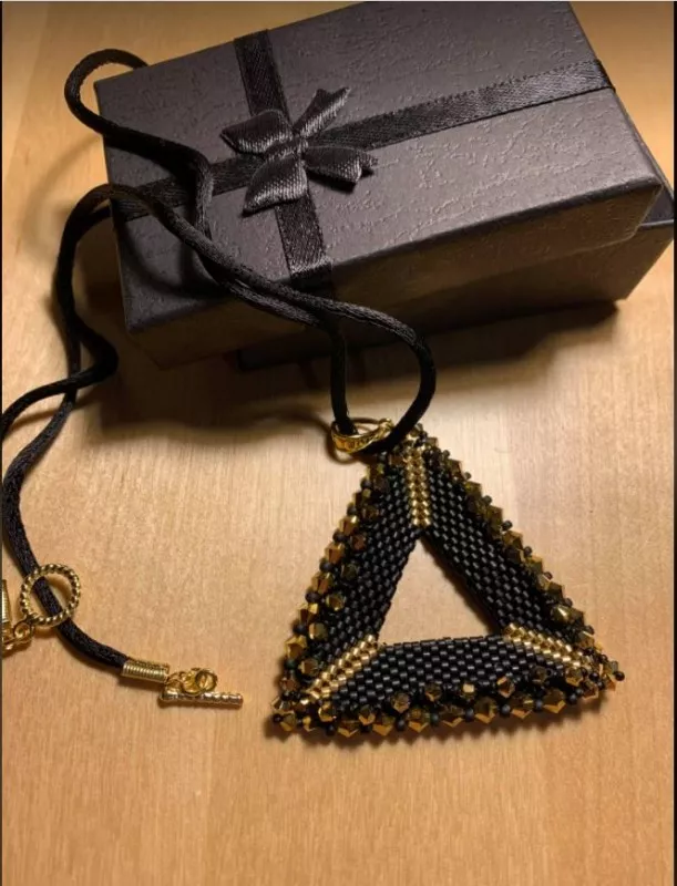Commencez par enfiler 15 perles Miyuki Délicas 11/0 noires (DB11), puis 2 DB11 de couleur dorée et répétez la démarche 3 fois. Repassez le fil dans les 16 premières perles pour faire une boucle. Votre fil doit ressortir au niveau de la 1ère perle DB11 dorée