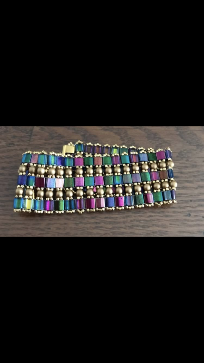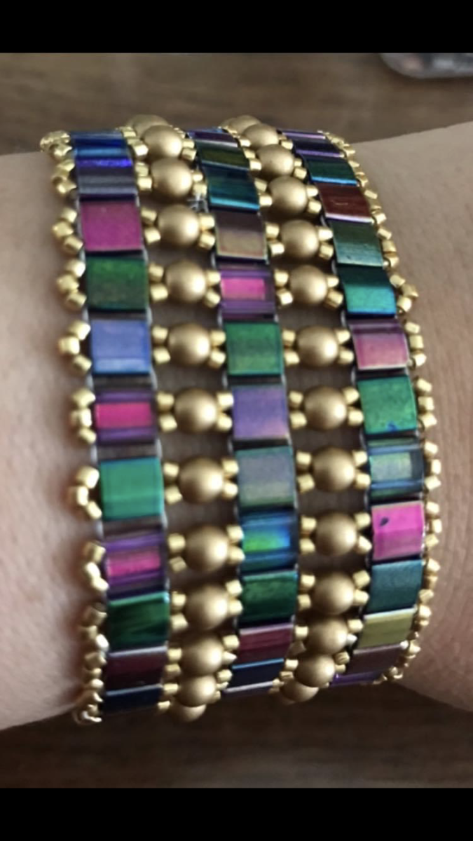 Vous avez réservé un joli accueil au premier tutoriel de Sev Rine, le pendentif triangle 3D scintillant en perles Miyuki 11/0 et toupies PureCrystal. Alors en voici un deuxième tutoriel qui va ravir les fans des perles Tila Beads. Un joli bracelet manchette multirangs mêlant Tila beads, perles rondes en verre tchèque et des rocailles. Et c'est LE combo gagnant !
