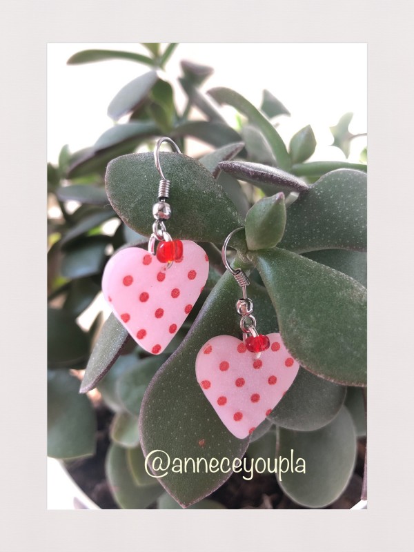 Dans ce tuto vidéo facile, vous réaliserez des boucles d'oreilles girly trop mignonnes en forme de cœur avec des petits pois dessinées sur le dessus. Elles sont montées sur des mini-créoles argentés.