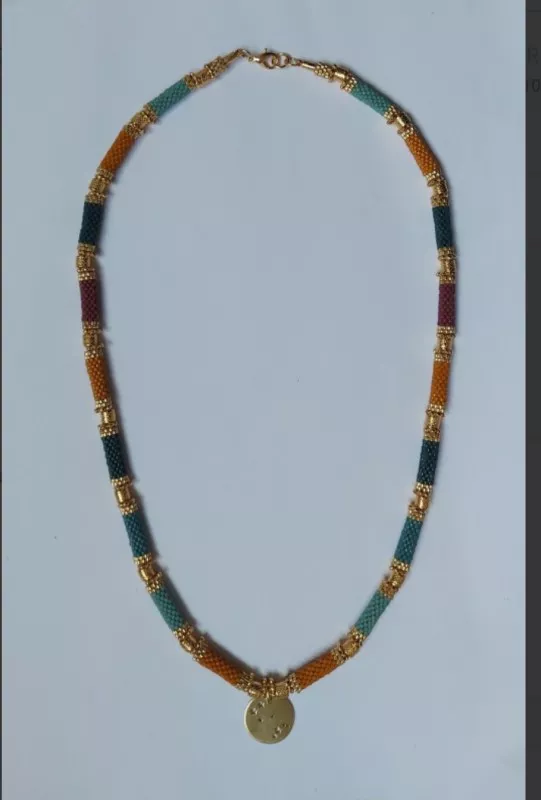 Terminez avec une perle dorée et passez dans la toute première perle dorée enfilée.