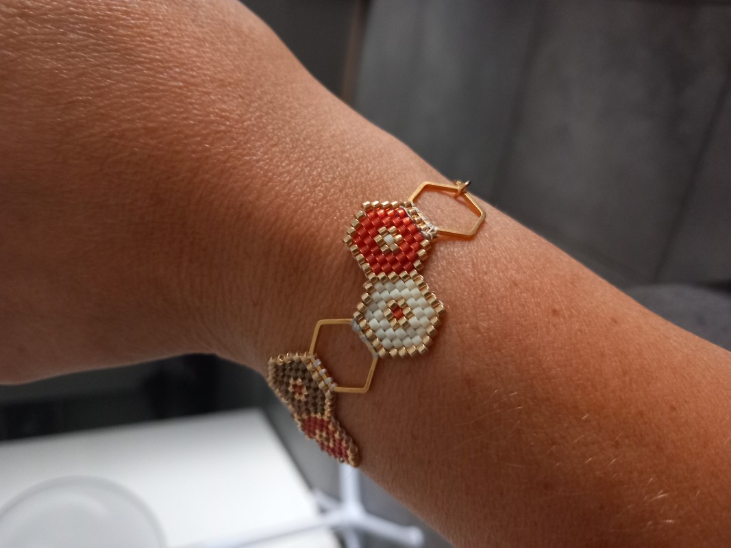 Aurélie du blog LiliAzalée, vous propose la confection d'un bracelet tendance en Gold Filled, grâce aux intercalaires en forme d'hexagone tissés avec des perles Miyuki. Un bracelet à la fois raffiné et graphique, un cadeau à se faire pour soi ou à offrir à sa copine.