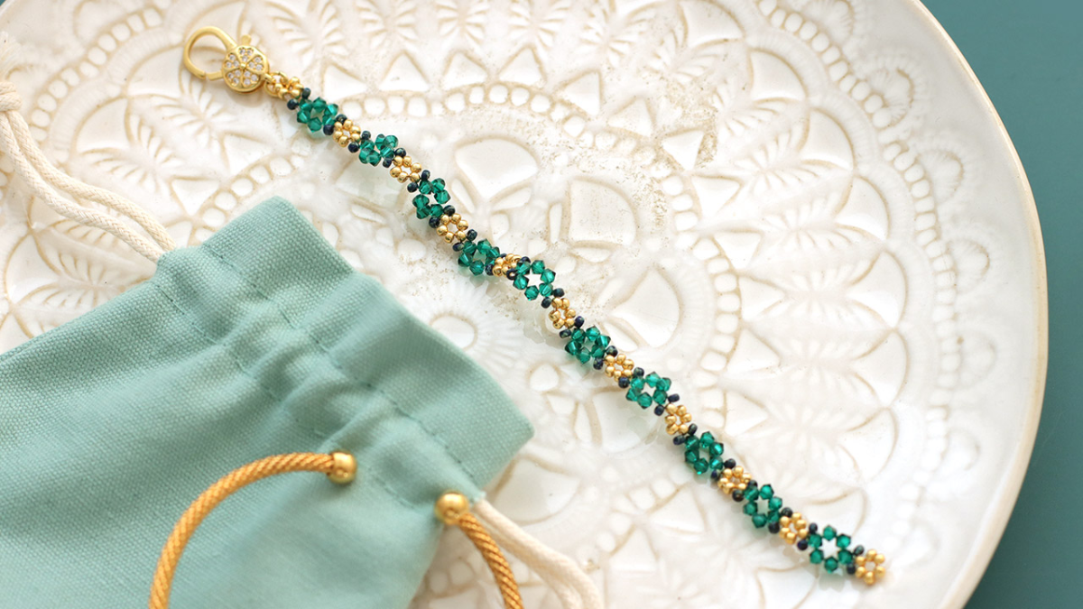 Cette technique est accessible aux débutants et vous permettra de créer un bracelet en perles en environ 1 h. Pas besoin d'aiguilles de tissage ; le fil de nylon 0,25 mm utilisé est suffisamment rigide pour être passé dans les perles sans l'aide d'une aiguille. Par contre, vous aurez besoin d'une pince pour ouvrir et fermer l'anneau du fermoir.