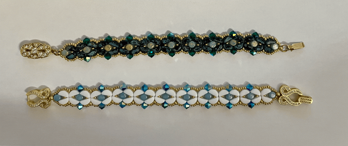 Le bracelet "Copine" est ici proposé dans une version bleue et dorée (à adapter selon vos envies en modifiant la liste du matériel avec les autres coloris disponibles sur notre site). Retrouvez également en bas de page, dans la liste "Variante" une autre suggestion d'association couleurs : orange / doré. La liste du matériel permet de réaliser un bracelet de 17 cm. Cette mesure est bien entendu adaptable, à vous d'ajouter ou de retirer une ou plusieurs répétitions du motif si nécessaire. Vous pouvez également envisager d'ajouter à la fin de votre bijou une chaînette d'extension, très pratique lorsqu'on souhaite par exemple offrir sa création et que l'on en connaît pas le tour de poignet.