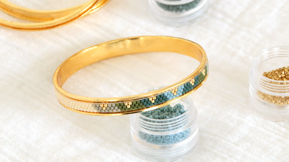 Nouveau chez perles and co : Des bracelets bangle et des bagues spéciales tissage Miyuki. Découvrez 3 largeurs de joncs à décorer avec des perles Miyuki delica 11/0 ou 15/0. Vous pourrez les porter seuls ou en accumulation. Les bagues pour tissage sont aussi disponibles en 3 largeurs et plusieurs tailles. Ces supports pour tissage Miyuki sont aussi disponibles en argenté. Les bracelets joncs sont compatibles avec un tour de main de 21 cm maximum.