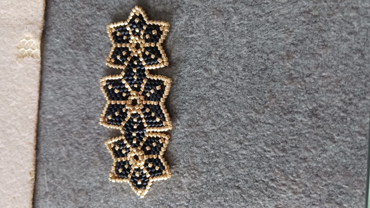 Dans ce tutoriel, notre créatrice Tiffanie vous propose de réaliser un bracelet de perles en peyote circulaire, dont le motif est inspiré des étoiles japonaises. Elle a choisi des perles Miyuki noires et dorées, le combo de couleurs parfait pour bijou qui viendrait compléter une tenue de soirée. Bien entendu, vous pouvez réaliser le même bracelet avec les couleurs que vous aimez en sélectionnant vos perles parmi notre large gamme de perles Miyuki Delica.